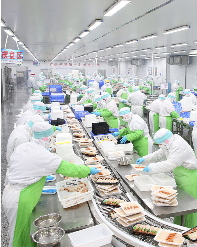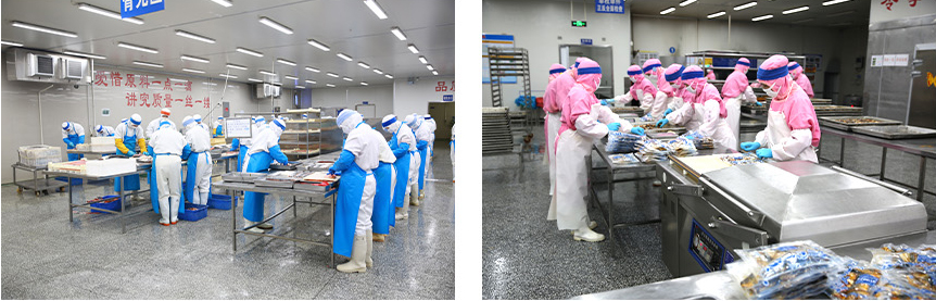 一线员工超4500人,进出车间“全副武装”并严格按照统一消毒标准,加工的食材从原料到成品,全程可追溯,15-18℃恒定的低温加工车间,保证食材的新鲜,消费者足不出境,就能买到出口品质的优质产品。